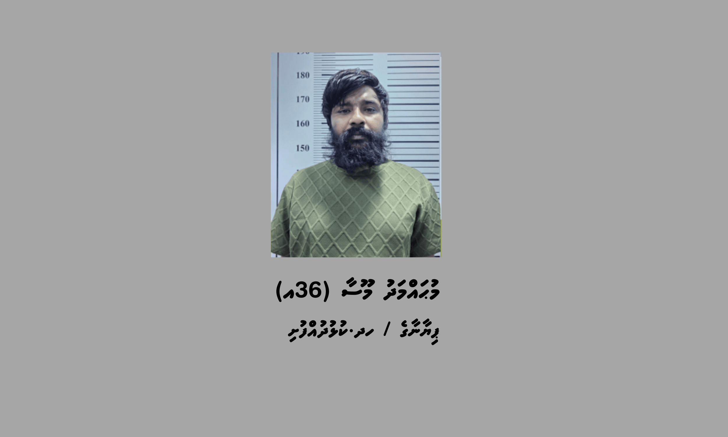 މި މައްސަލަ އާ ގުޅިގެން ހައްޔަރުކޮށްފައި ވަނީ ހދ.ކުޅުދުއްފުށި / ޕިޔާނާގެ ، މުޙައްމަދު މޫސާ (36އ) އެވެ.