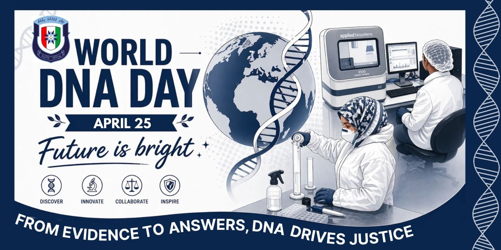 ދިވެހި ފުލުހުންގެ ޚިދުމަތުގެ ފޮރެންސިކް ސަރވިސަސްގެ ޑީ.އެން.އޭ ލެބޯޓަރީގެ މައިގަނޑު މަސައްކަތުގެ ތެރޭގައި، ކުށްކުރާ މީހުން ދެނެގަނެ ގާނޫނު ތަންފީޒުކުރާ އިދާރާތަކަށާއި، އަދުލު އިންސާފުގެ ނިޒާމަށް ބޭނުންވާ މާއްދީ ހެއްކާ ގުޅޭ އިތުބާރު ހުރި ނަތީޖާތައް ފޯރުކޮށްދިނުން ހިމެނެއެވެ. ލެބޯޓަރީގެ މަސައްކަތްތަކާއި ތަހުލީލުގެ ނިންމުންތައް ބިނާކުރެވެނީ ސައިންޓިފިކް ކޮމިއުނިޓީން ބަލައިގެންފައިވާ މިންގަނޑުތަކާ އެއްގޮތްވާގޮތުގެ މަތިންނެވެ. ދުނިޔޭގެ ޑީ.އެން.އޭ ދުވަހަކީ ހަމައެކަނި ސައިންޓިފިކް ކުރިއެރުންތަށް ފާހަގަކުރާ ދުވަހެއް ނޫނެވެ. މިއީ ޓެކްނޮލޮޖީ ކުރިއަރަމުންދާ ވަރަކަށް، ޑީ.އެން.އޭ ސައިންސްގެ ބޭނުން އަހުލާގީ މިންގަނޑުތަކުގެ ތެރެއިން، ޒިންމާދާރުކަމާއެކު މުޖުތަމައުގެ ލާބައާއި މަންފާއަށްޓަކައި ފޯރުކޮށްދިނުމަށް މި ފަންނުގެ ބޭފުޅުން އަޒުމުއާކުރާ ދުވަހެވެ.