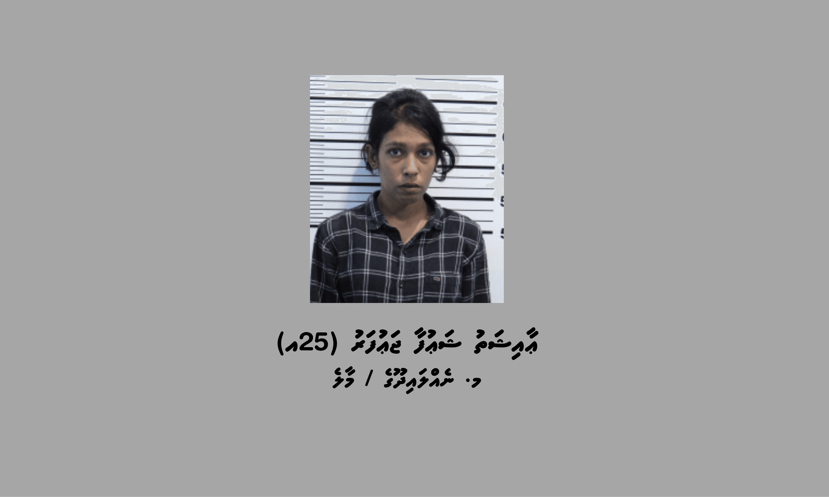 މި އަމުރާ ގުޅިގެން ހޯދަމުންދަނީ މ. ނެއްލައިދޫގެ / މާލެ، ޢާއިޝަތު ޝަޢުފާ ޖަޢުފަރު (25އ) އެވެ.